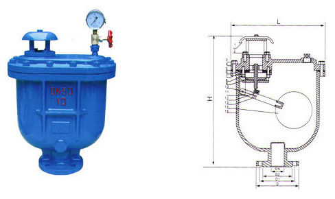 復(fù)合式排氣閥用于污水管道上的最高點或有閉氣的地方,靠排除管內(nèi)的氣體來疏通管道,達(dá)到正常工作。如不裝排氣閥,管道隨時出現(xiàn)起阻,是管道出水容量達(dá)不到設(shè)計要求,其次:其次:管道在運轉(zhuǎn)時出現(xiàn)停電、停泵管道及時出現(xiàn)負(fù)壓會引起管道振動或破裂,排(吸)氣閥就迅速把空氣吸入管內(nèi),防止管道振動或破裂。
