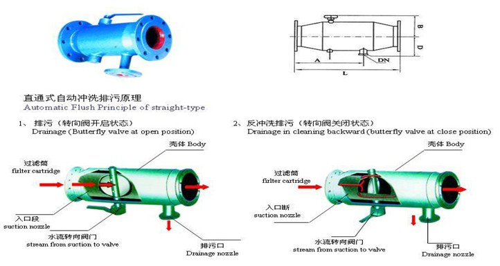 剝離系統(tǒng):雜質(zhì)堵塞過(guò)濾器通道后,剝離系統(tǒng)啟動(dòng),刮除濾網(wǎng)表面雜質(zhì)達(dá)到濾網(wǎng)再生目的,同時(shí)雜質(zhì)收集在濾器下部貯槽,最終通過(guò)排放口排出。